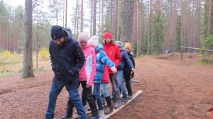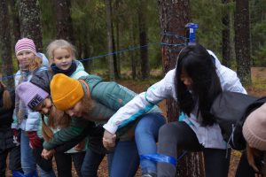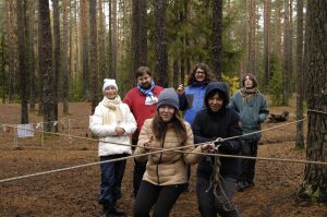 Рано утром вся школа (160 человек!) приехала в Лемболово, где началось Приключение. В этом году ребята оказались в страшных сказках, но с успехом прошли через все испытания: проползли, скованные проклятьем, в подземелье Кощея, с помощью Ученого Дуба выпутались из Обители Узла и прыгнули из огня да в полымя.